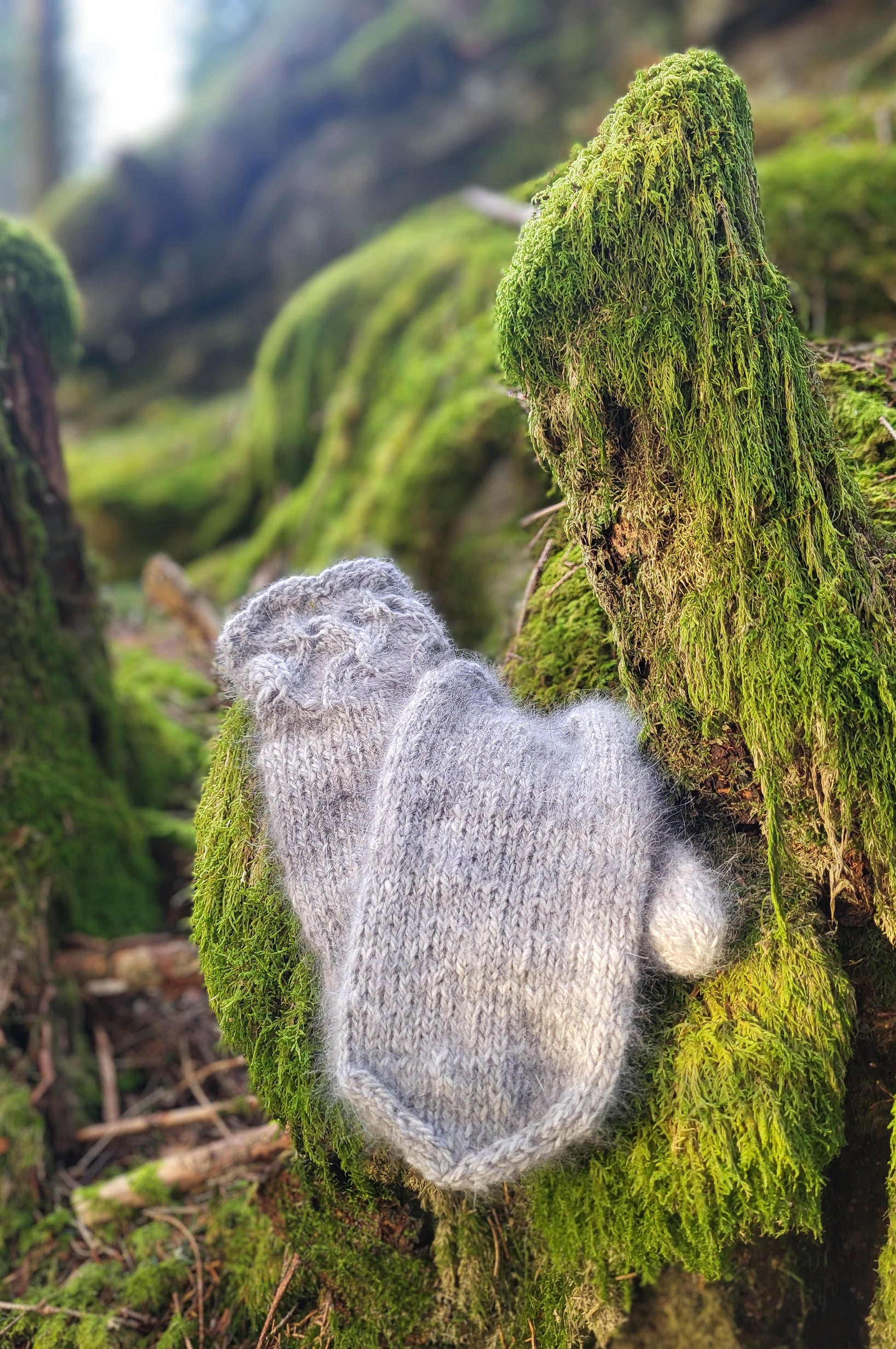 Nydelige angoravotter strikket i håndspunnet angoragarn. Mjuke, gode og varme. Mønster: Angulla votten. Onesize damestørrelse.