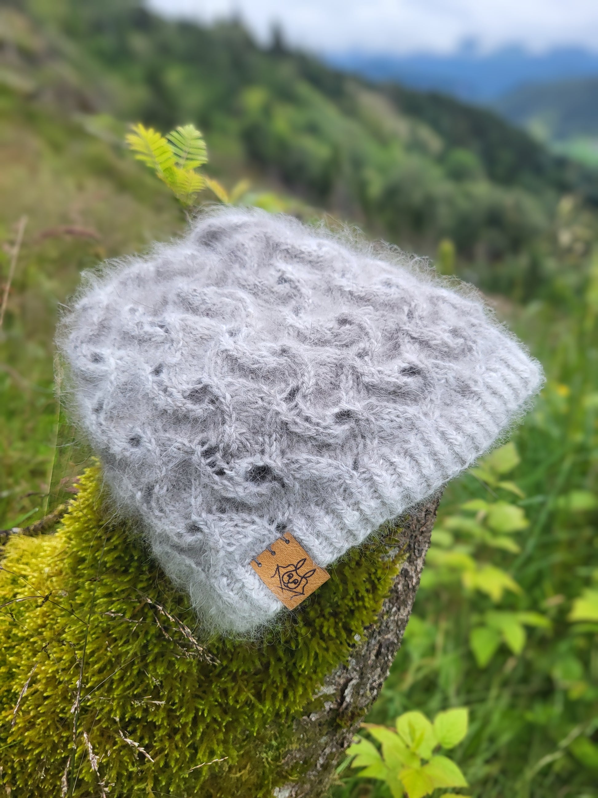 Digital nedlastbar strikkeoppskrift på en lekker og pen, luftig, men varm angoralue, designet for håndspunnet angoragarn. Annet DK garn kan også brukes. Strikkes på pinne 3. Garnmengde ca. 60. Onesize damestørrelse.