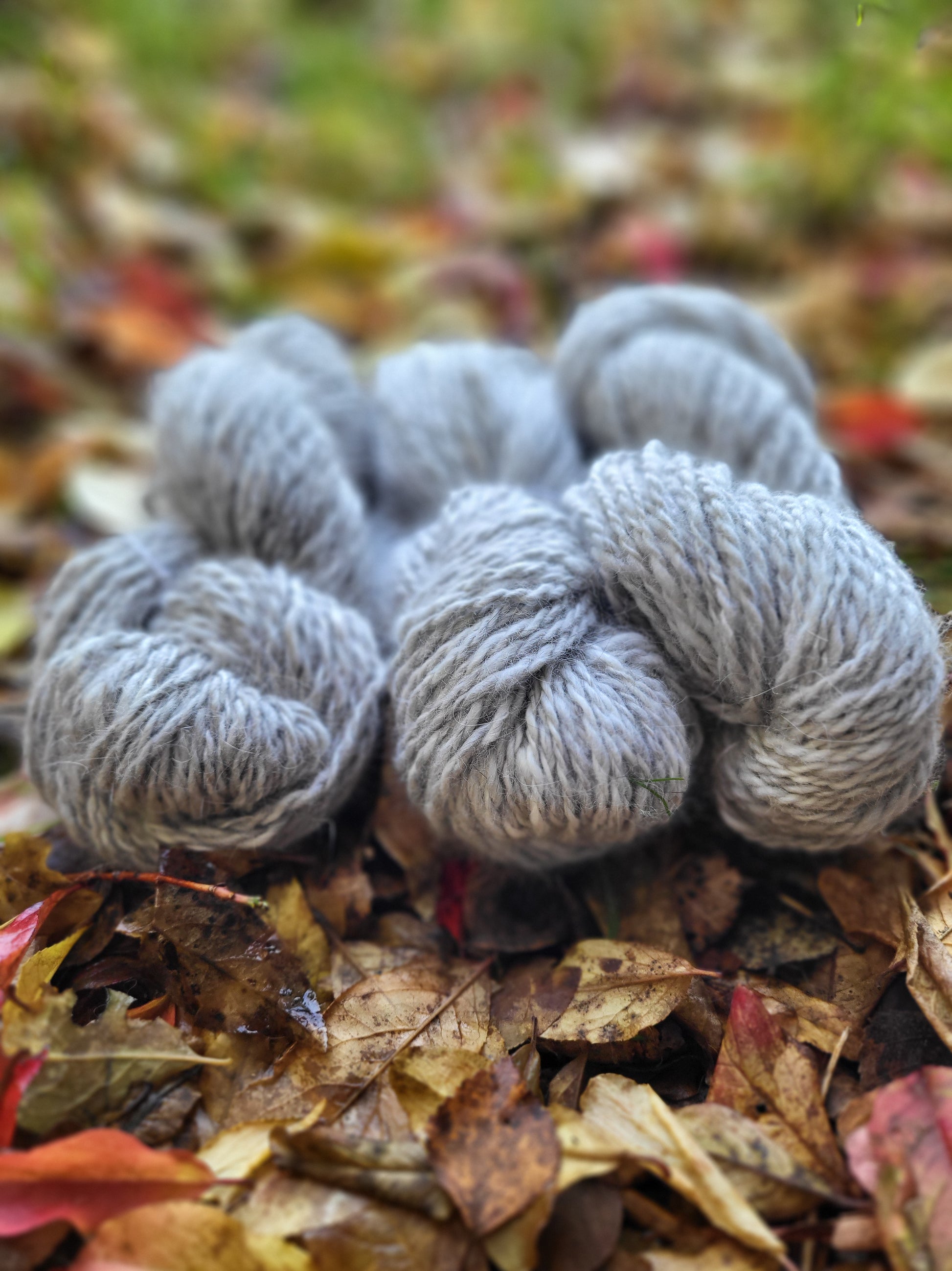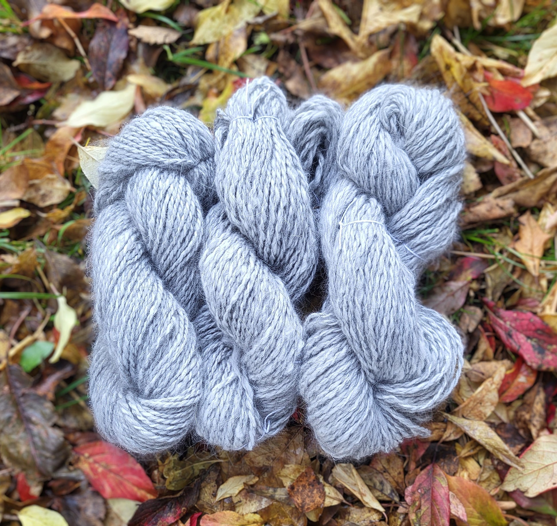 Grått melert håndspunnet angoragarn fra kaninene Per Cæsar, Alfonso og Anemone. Garnet kommer i kaninenes naturlige farge og vil derfor variere i melering og gråtoner. ca. 96 m/60 g (omtrent DK garn). Anbefalt pinnestørrelse for småstrikk 3-3,5 mm., og for skjerf- og sjalstrikk 4-4,5 mm.
